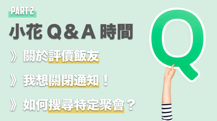有時候忘記評價飯友、開會時手機一直震動?我想看這禮拜六的局有什麼… 小花繼續解決大家的疑難雜症!