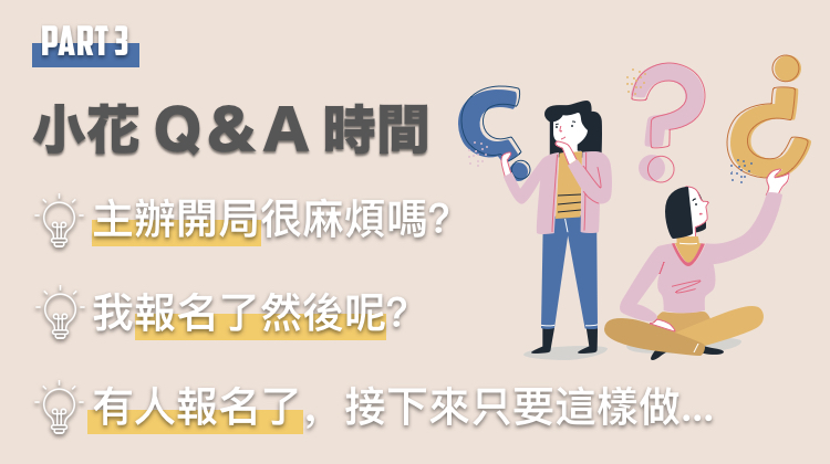 Q1:主辦會很麻煩嗎?怎麼做才好呢?