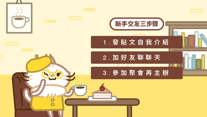 此時的你已經有幾個聊得不錯的朋友了!記得追蹤他們,這樣他們舉辦聚會你就會收到通知