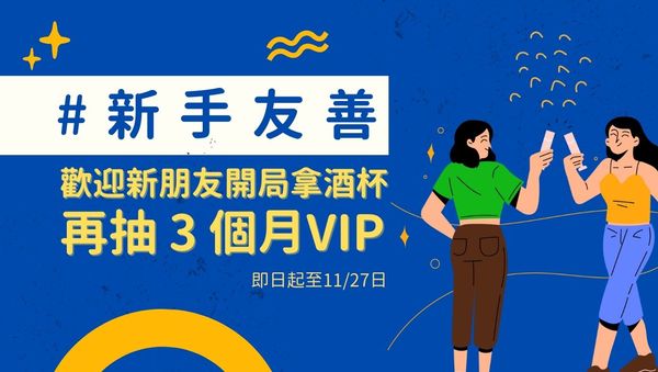 - 凡成功主辦『#新手友善』聚會(審核通過一位以上報名者) ,就送300酒杯,若主辦人為女生或 VIP 會員則贈送600酒杯,獲得雙倍獎勵!