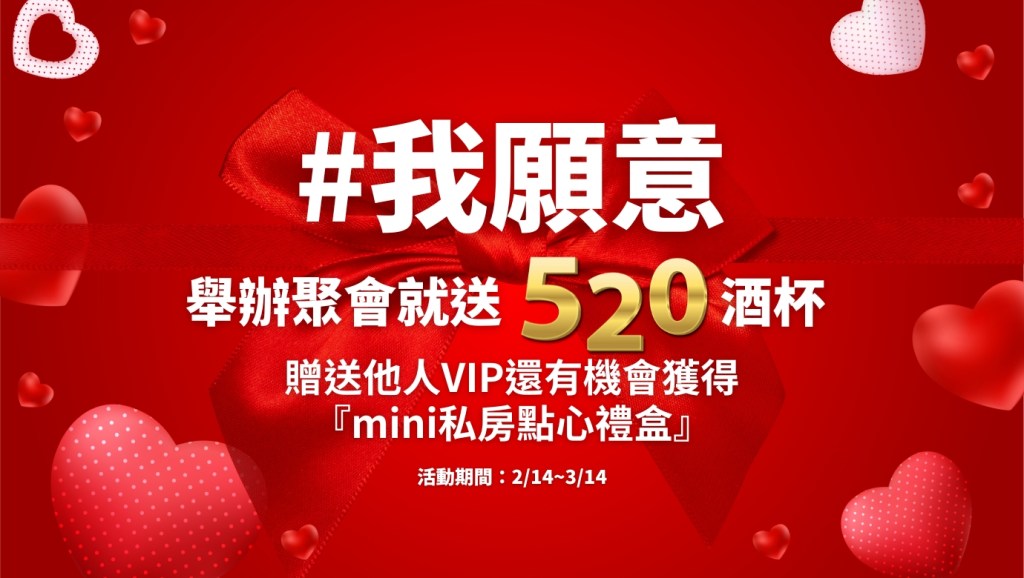 即日起至3月14日,聚會標題加上「#我願意」舉辦情人節聚會,