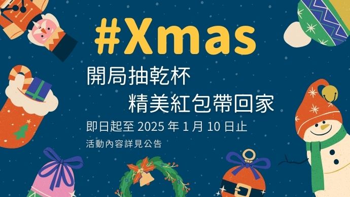 參加方式:即日起至2025年1月10日,成功舉辦3人以上的交換禮物、聖誕派對或聚餐,聚會標題加上「#Xmas」,即送主辦人300酒杯獎勵,還有機會抽中乾杯禮券$1500元。